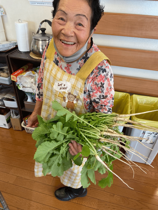 大根の間引きをしてくださいました。大きく育ったら良いね!と楽しみにされております。