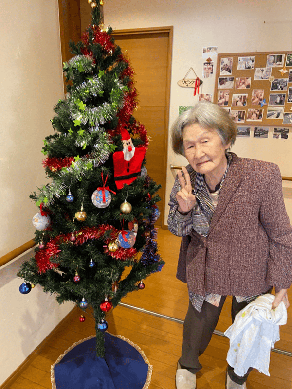 利用者様と協力してクリスマスツリーの飾り付けをしました♪サンタさん可愛いねと話されていました。