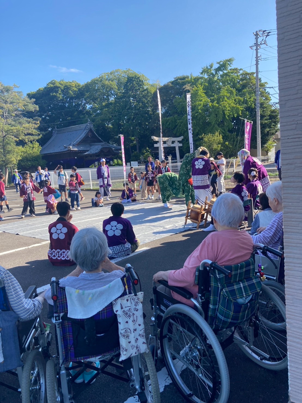 秋祭りに参加させていただきました。お神輿や獅子舞を見ることができて大変喜ばれていました。